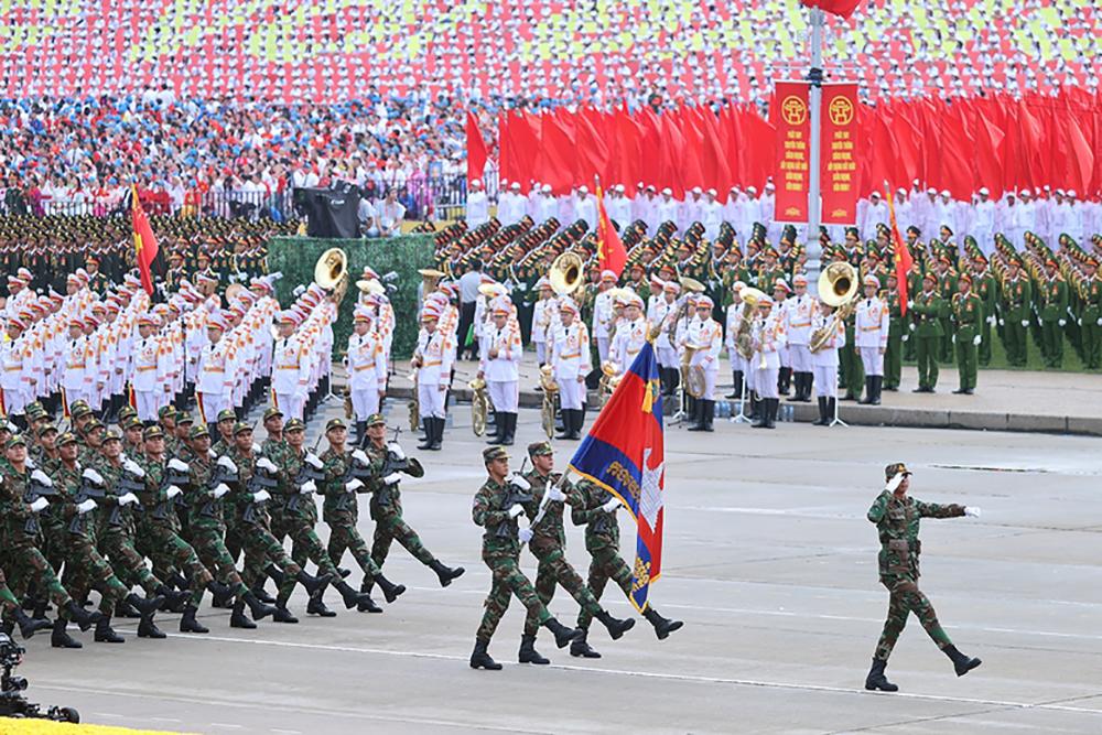 Khối Quân đội Cam-pu-chia tiến qua lễ đài.