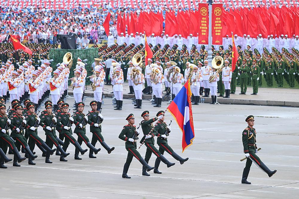 Khối Quân đội Lào tiến qua lễ đài.