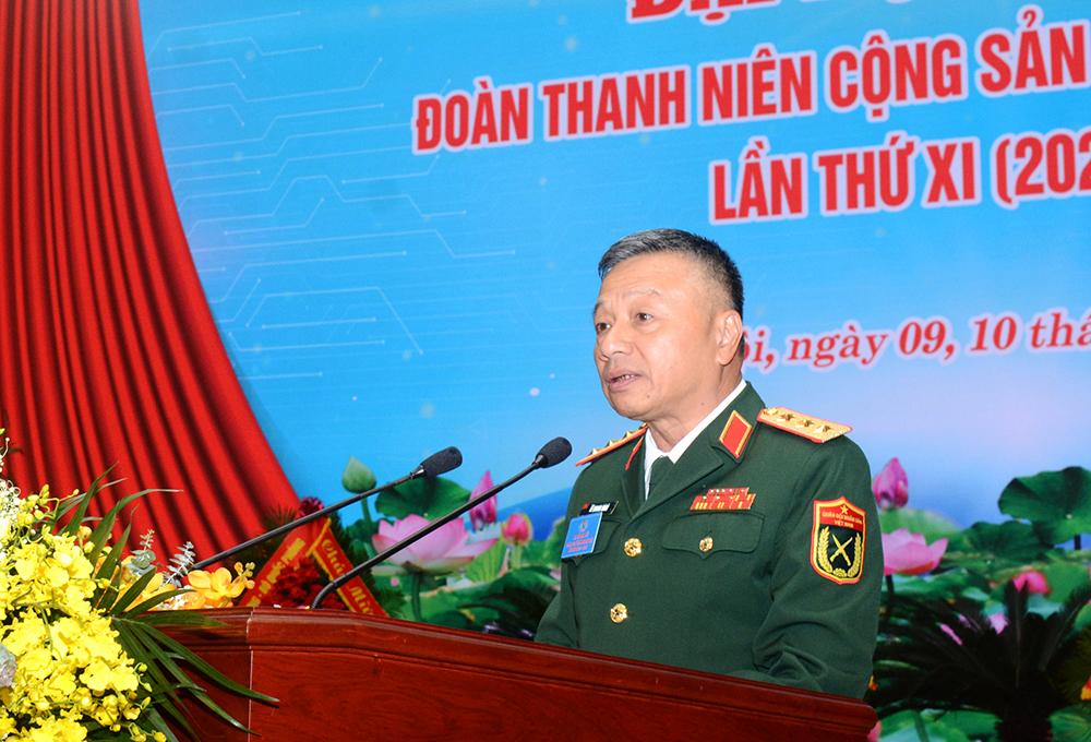 Thượng tá Nguyễn Quang Huy, Trưởng Ban Thanh niên Quân đội phát biểu tại đại hội.