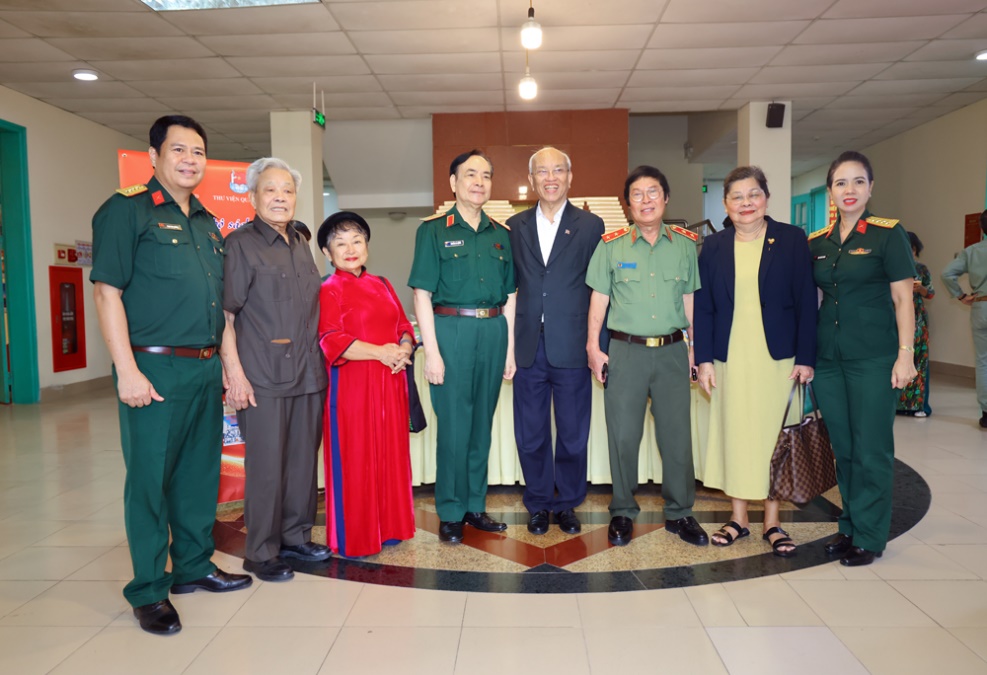 Lãnh đạo Nhà xuất bản Quân đội nhân dân và Thư viện Quân đội chụp ảnh chung với các tác giả và các đại biểu.
