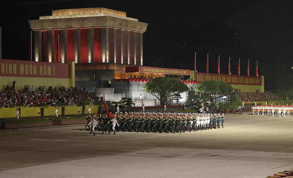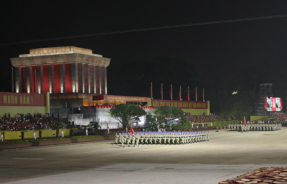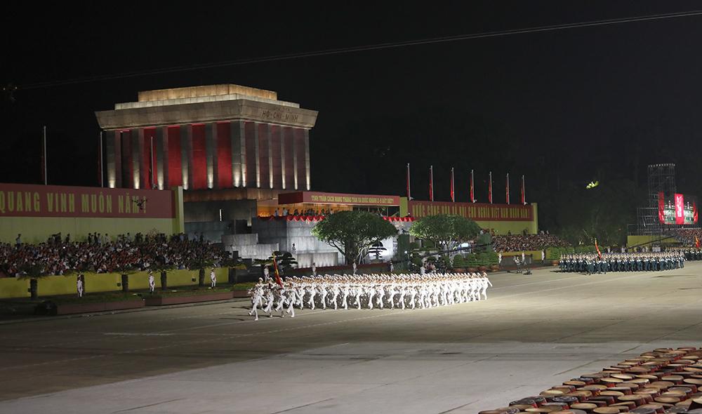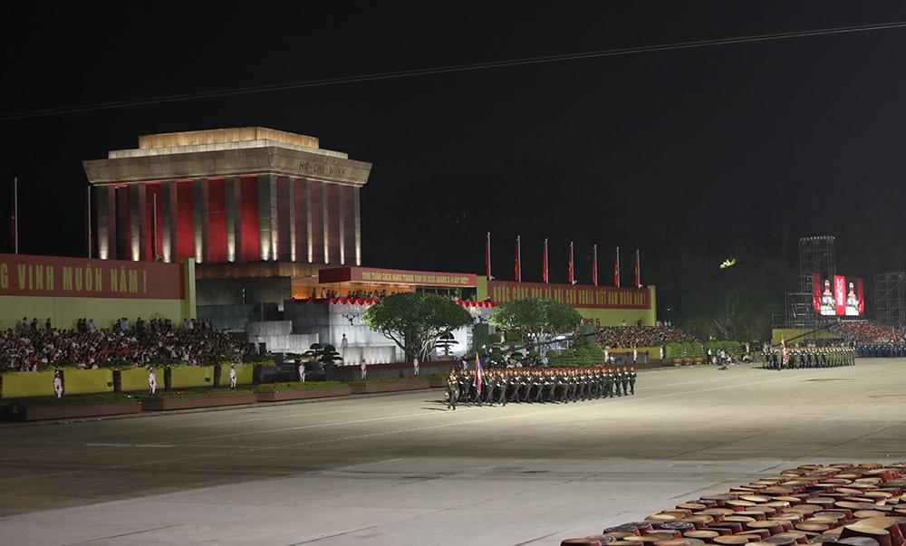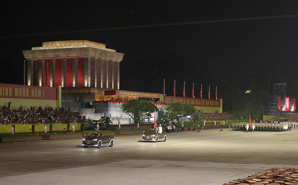 (Bqp.vn) - Tối 27/8, các lực lượng tham gia diễu binh, diễu hành tại Lễ kỷ niệm 80 năm Cách mạng tháng Tám và Quốc khánh 2/9 (nhiệm vụ A80) tiến hành sơ duyệt cấp Nhà nước tại Quảng trường Ba Đình (Thủ đô Hà Nội). Đây là lần sơ duyệt trước khi bước vào tổng duyệt, chuẩn bị thực hiện nhiệm vụ chính thức trong ngày đại lễ.
