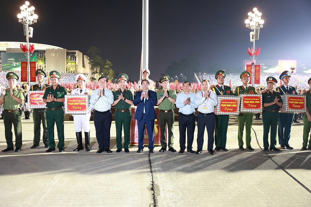 Thủ tướng Phạm Minh Chính tặng quà các lực lượng tham gia diễu binh, diễu hành.