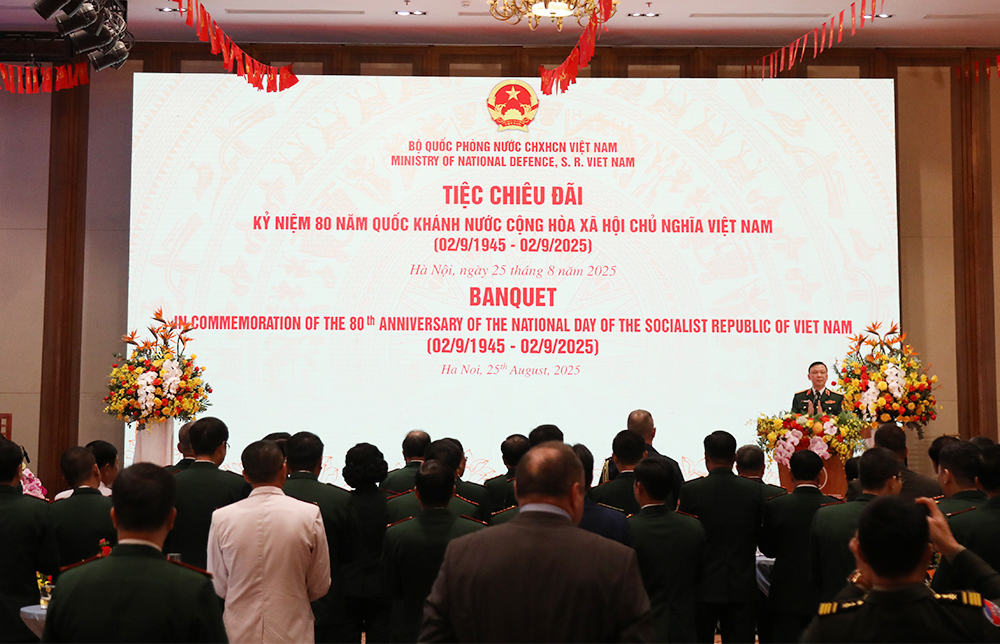 (Bqp.vn) - Tối 25/8, tại Hà Nội, Bộ Quốc phòng nước Cộng hòa XHCN Việt Nam tổ chức Tiệc chiêu đãi kỷ niệm 80 năm Ngày Quốc khánh nước Cộng hòa XHCN Việt Nam (02/91945 - 02/9/2025). Thượng tướng Hoàng Xuân Chiến, Ủy viên Trung ương Đảng, Ủy viên Thường vụ Quân ủy Trung ương, Thứ trưởng Bộ Quốc phòng chủ trì tiệc chiêu đãi.