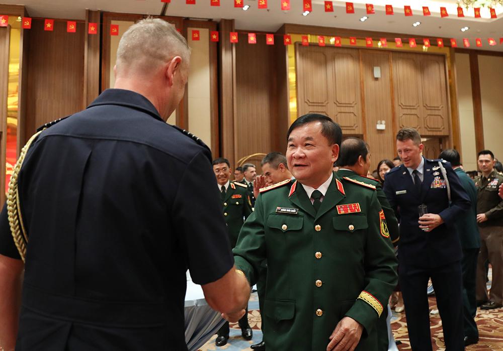 Dự tiệc chiêu đãi có Thượng tướng Phùng Sĩ Tấn, Phó Tổng Tham mưu trưởng QĐND Việt Nam; Thượng tướng Lê Quang Minh, Phó Chủ nhiệm Tổng cục Chính trị QĐND Việt Nam; đại diện Tùy viên Quốc phòng, Tùy viên Quân sự, Tùy viên Quân chủng các nước và đại diện một số cơ quan, tổ chức quốc tế tại Việt Nam. Cùng dự có đại biểu lãnh đạo, chỉ huy một số cơ quan, đơn vị trực thuộc Bộ Quốc phòng.