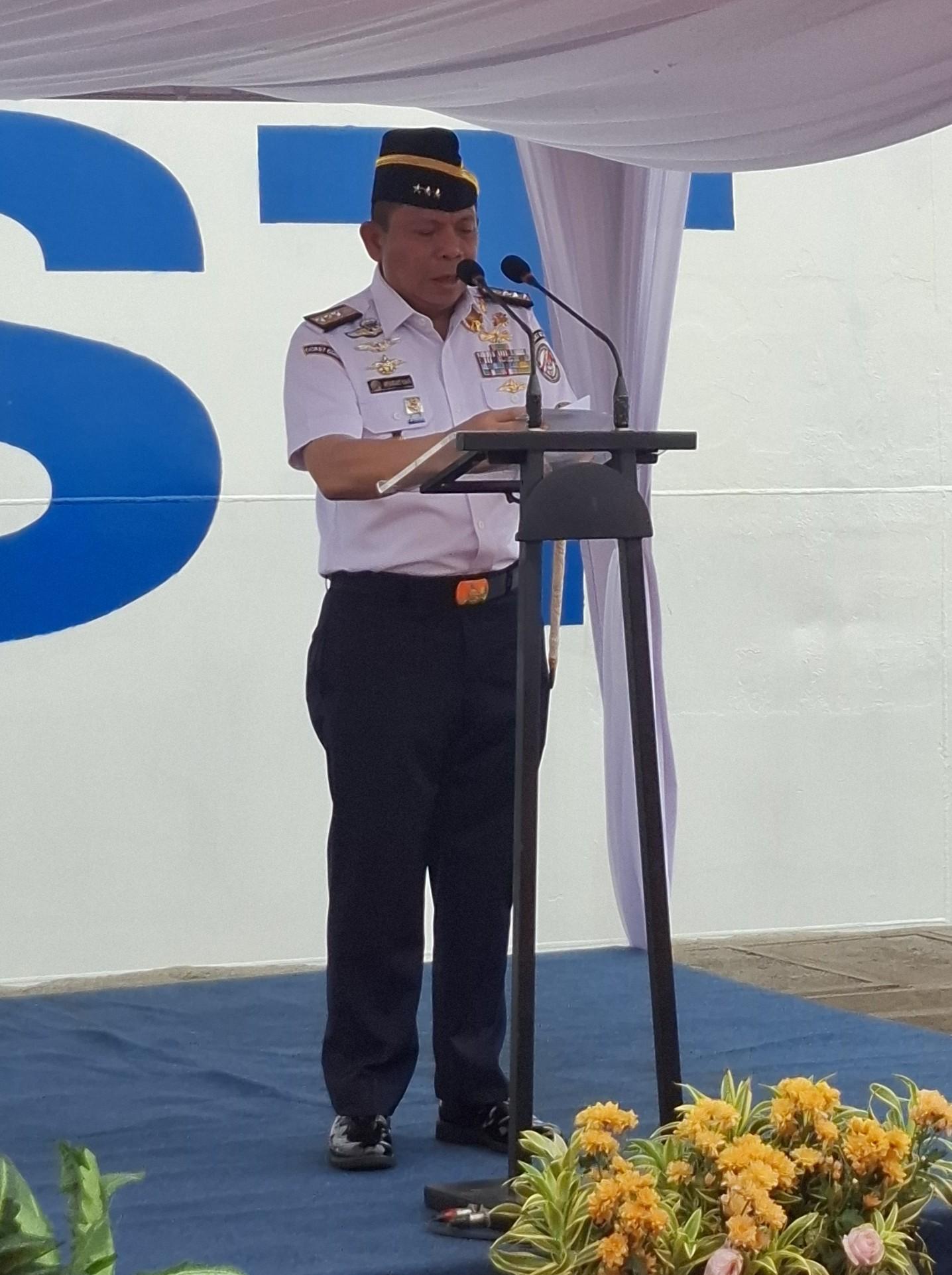 Phó Đô đốc Irvansyah phát biểu tại lễ đón.