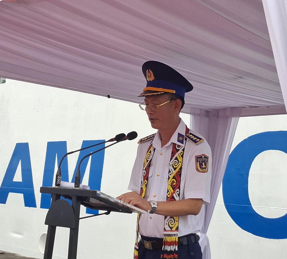 Phát biểu tại lễ đón, Đại tá Nguyễn Trần Đông bày tỏ niềm vui và cảm ơn sự đón tiếp long trọng, chu đáo, tình cảm của đất nước, con người In-đô-nê-xi-a nói chung, Cảnh sát biển In-đô-nê-xi-a nói riêng dành cho tàu CSB 8001 và Đoàn công tác Cảnh sát biển Việt Nam. Đại tá Nguyễn Trần Đông hy vọng chuyến thăm, giao lưu lần này của tàu CSB 8001 tại In-đô-nê-xi-a sẽ là cơ hội tốt để cán bộ, nhân viên hai lực lượng giao lưu, học hỏi về các mặt công tác trong quá trình thực hiện nhiệm vụ, đặc biệt là thực thi pháp luật trên biển.