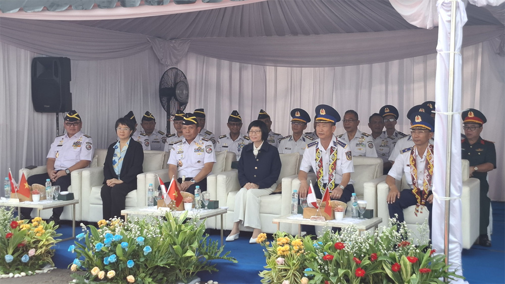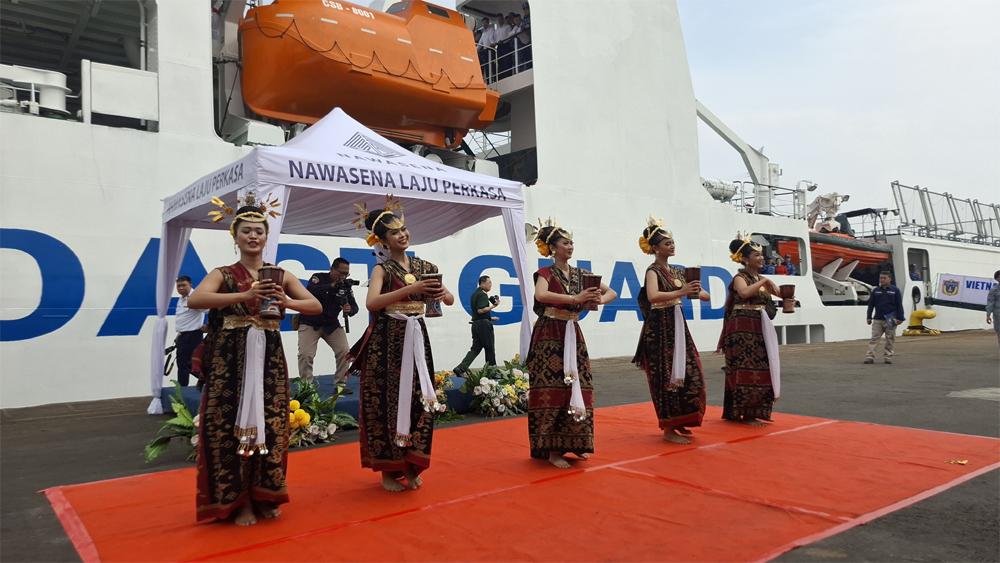 Lễ đón tàu CSB 8001 và Đoàn công tác Cảnh sát biển Việt Nam được tổ chức trang trọng dưới sự chủ trì của Phó Đô đốc Irvansyah, S.H., CHRMP., M.Tr.Opsla., Tư lệnh Cảnh sát biển In-đô-nê-xi-a. Tham dự lễ đón có Đại sứ, Trưởng phái đoàn Đại diện thường trực Việt Nam tại ASEAN Tôn Thị Ngọc Hương, Đại tá Nguyễn Tuấn Đức, Tùy viên Quốc phòng Việt Nam tại In-đô-nê-xi-a cùng cán bộ, nhân viên Đại sứ quán Việt Nam tại In-đô-nê-xi-a.