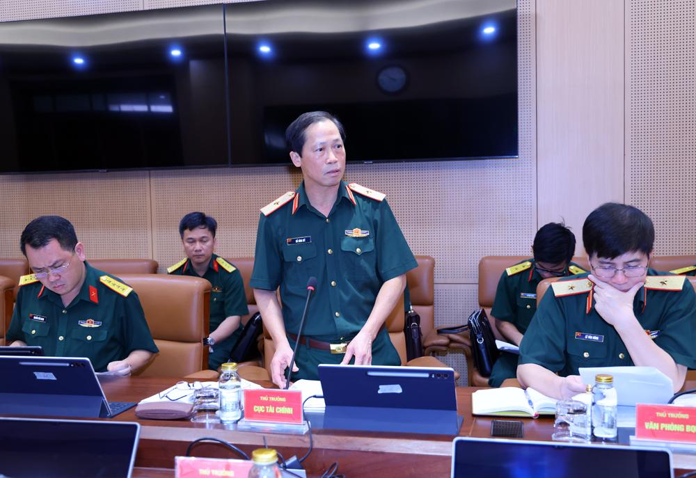 Đại diện Cục Tài chính Bộ Quốc phòng báo cáo tại hội nghị.