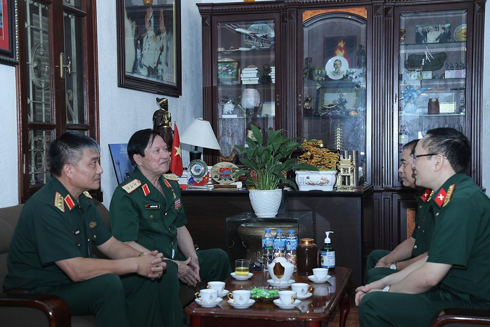 Trong không khí ấm áp, thân tình, Thượng tướng Nguyễn Văn Hiền ân cần thăm hỏi, chúc sức khỏe Trung tướng Đặng Quân Thụy, Thượng tướng Nguyễn Huy Hiệu, mong các đồng chí tiếp tục quan tâm và có những đóng góp, chia sẻ kinh nghiệm với lãnh đạo Bộ Quốc phòng, đội ngũ cán bộ các cấp, giúp Bộ Quốc phòng và các cơ quan, đơn vị hoàn thành tốt nhiệm vụ được Đảng và Nhân dân giao phó.