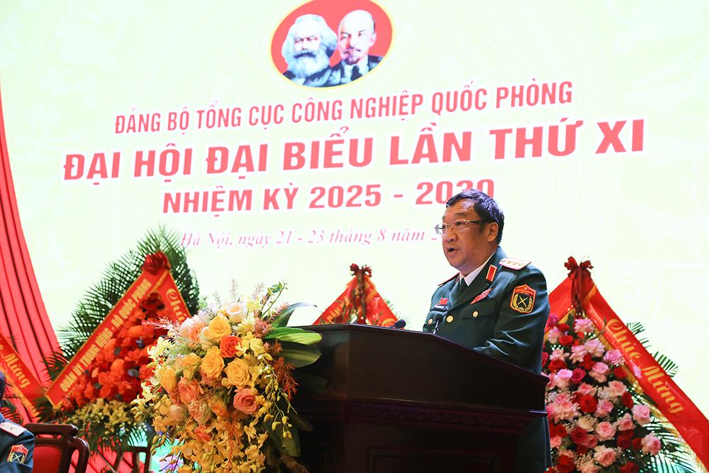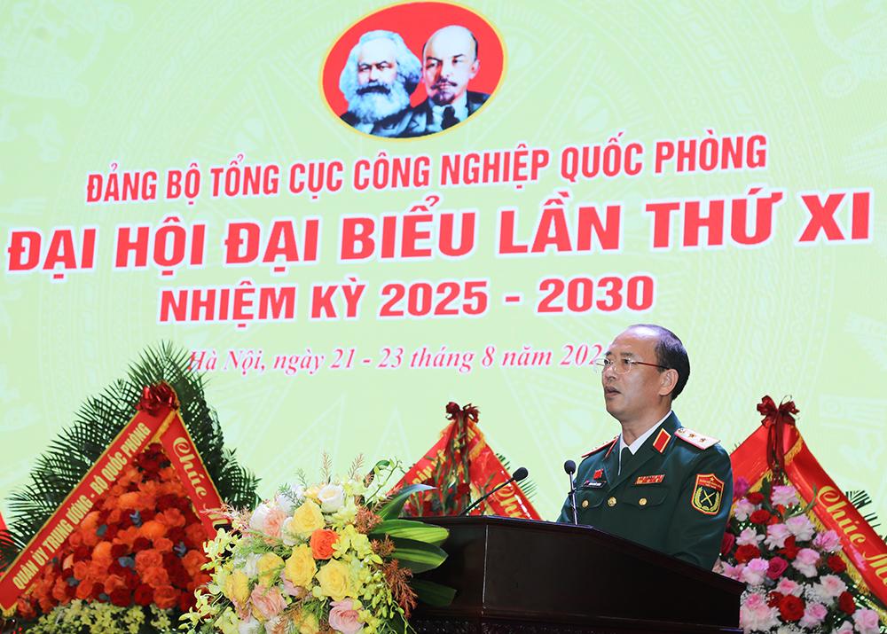 Trung tướng Đinh Quốc Hùng, Bí thư Đảng ủy, Chính ủy Tổng cục CNQP trình bày Báo cáo chính trị tại đại hội.
