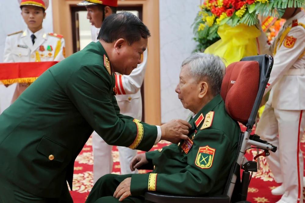 Thượng tướng Hoàng Xuân Chiến trao Huy hiệu 60 năm tuổi Đảng tặng Thượng tướng Phan Trung Kiên.