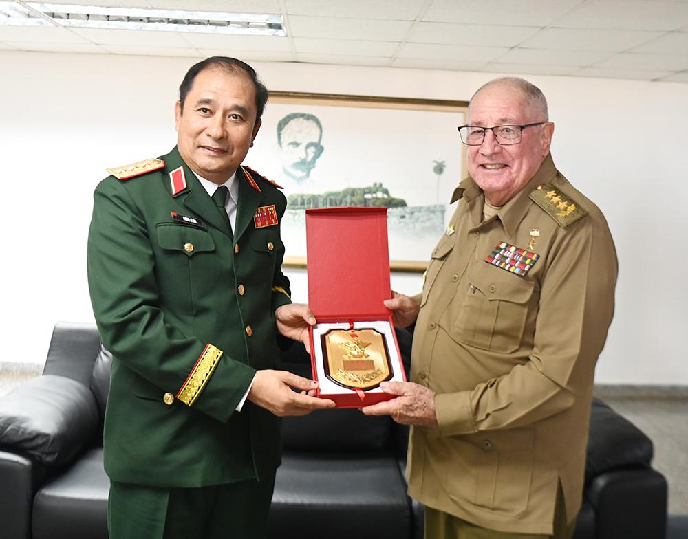 Thượng tướng Álvaro López Miera trao quà lưu niệm tặng Thượng tướng Phùng Sĩ Tấn.