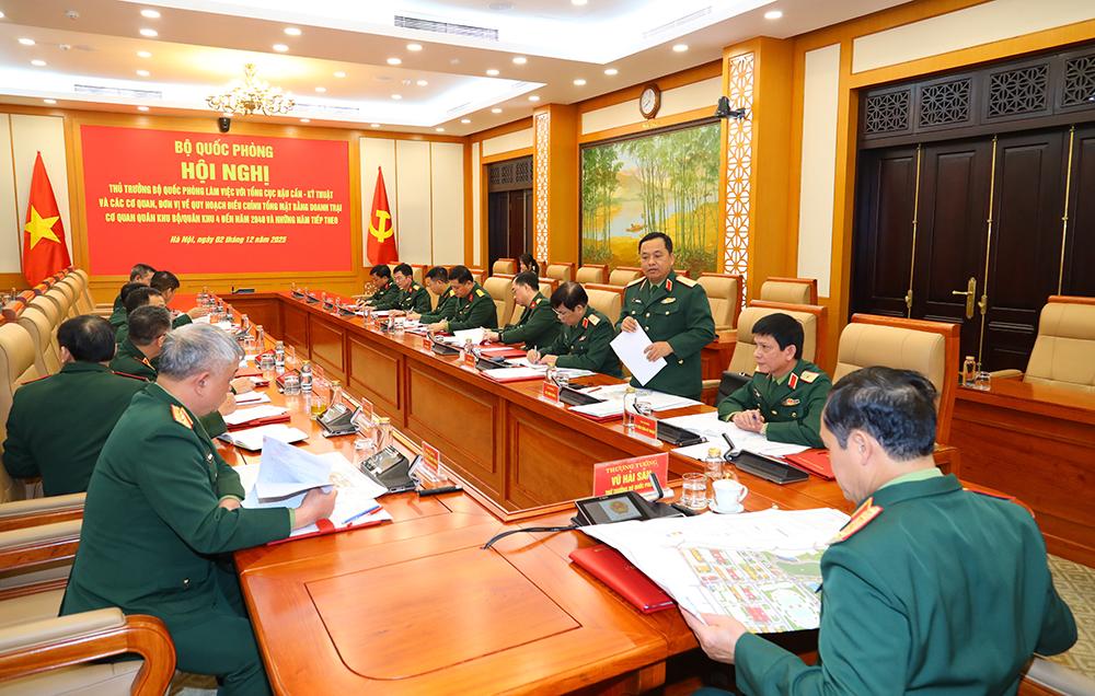 (Bqp.vn) - Sáng 2/12, tại Hà Nội đã diễn ra Hội nghị Thủ trưởng Bộ Quốc phòng làm việc với Tổng cục Hậu cần - Kỹ thuật và các cơ quan, đơn vị về quy hoạch điều chỉnh tổng mặt bằng doanh trại cơ quan Quân khu bộ/Quân khu 4 đến năm 2040 và những năm tiếp theo. Thượng tướng Vũ Hải Sản, Ủy viên Trung ương Đảng, Thứ trưởng Bộ Quốc phòng chủ trì hội nghị.
