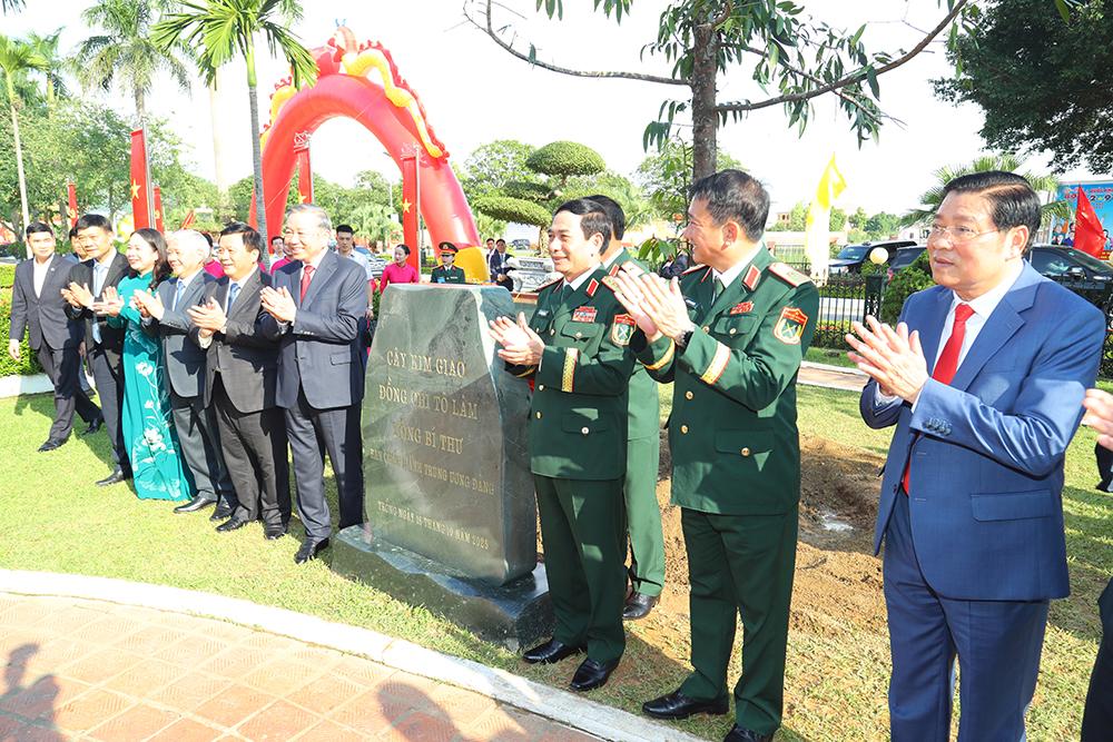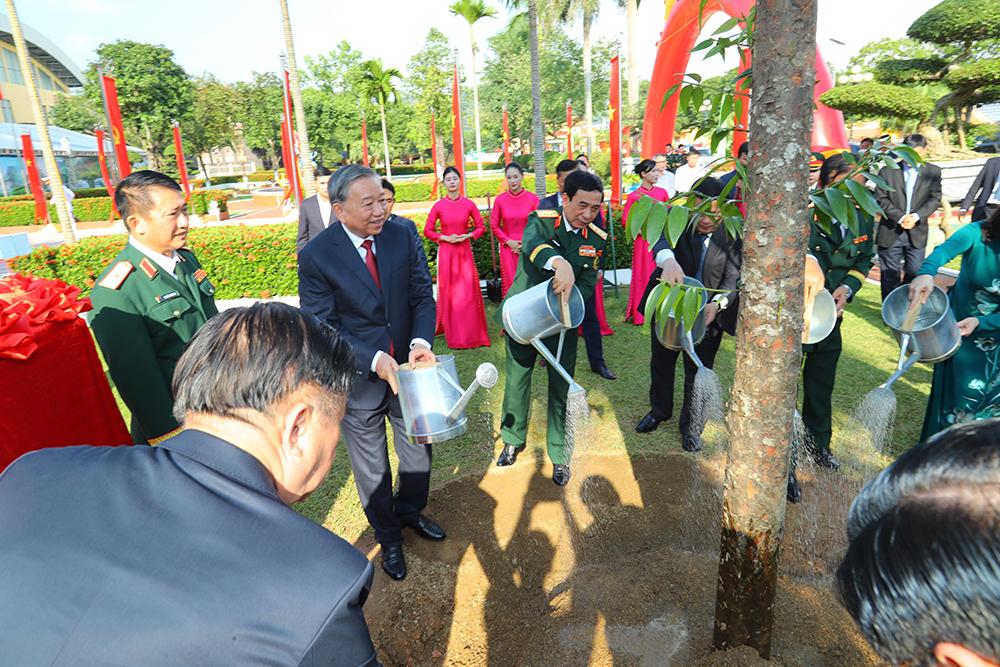 Nhân dịp này, Tổng Bí thư Tô Lâm, Bí thư Quân ủy Trung ương và các đại biểu đã trồng cây lưu niệm trong khuôn viên Bộ Tư lệnh Quân khu 1.