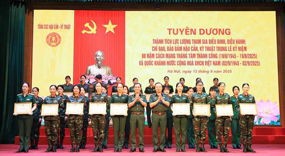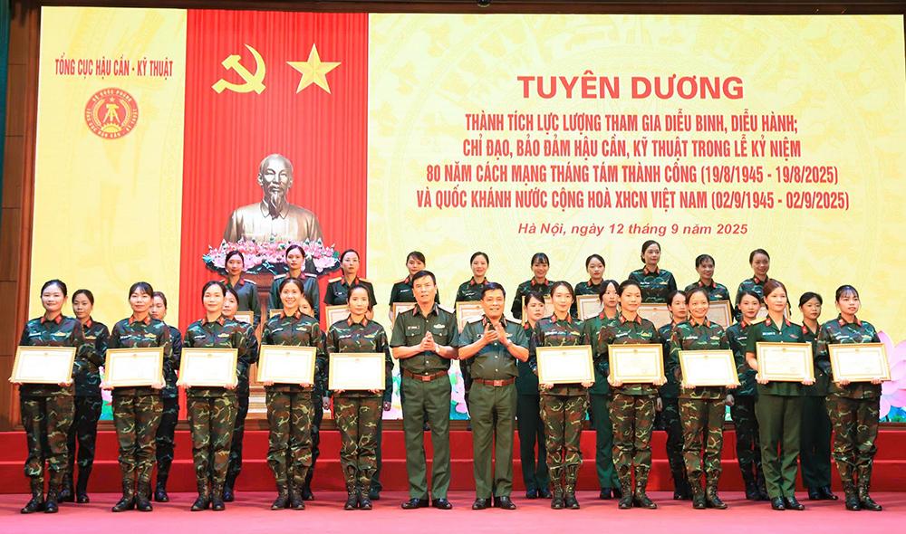 (Bqp.vn) - Chiều 12/9, tại Hà Nội, Tổng cục Hậu cần - Kỹ thuật (HC-KT) tổ chức Tuyên dương các lực lượng tham gia diễu binh, diễu hành, bảo đảm HC-KT trong Lễ kỷ niệm 80 năm Cách mạng tháng Tám thành công (19/8/1945 - 19/8/2025) và Quốc khánh nước Cộng hòa XHCN Việt Nam (02/9/1945 - 02/9/2025) (nhiệm vụ A80). Trung tướng Trần Minh Đức, Chủ nhiệm Tổng cục HC-KT chủ trì buổi lễ.
