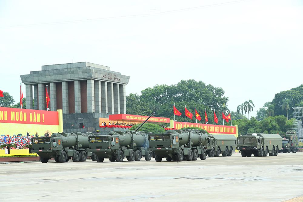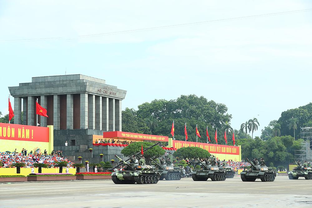 Các khối xe, pháo của Quân đội, gồm: Khối xe tăng thiết giáp; khối pháo tự hành, pháo phản lực, tên lửa đất đối đất; khối xe pháo phòng không, tên lửa phòng không; khối xe tác chiến điện tử... Các khối xe đặc chủng của Công an, gồm: Khối xe chỉ huy giao thông dẫn đoàn; khối xe bảo vệ, hộ tống lãnh đạo Đảng, Nhà nước và đoàn khách quốc tế; khối xe Trung tâm chỉ huy tác chiến cơ động; khối xe đặc chủng bọc thép chống đạn; khối xe đặc chủng chống bạo loạn; khối xe đặc chủng hỗ trợ tác chiến đa năng; khối xe phòng cháy, chữa cháy, cứu nạn, cứu hộ...