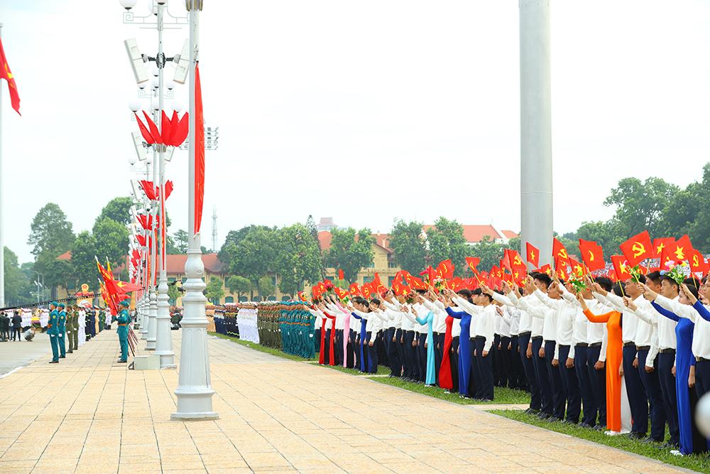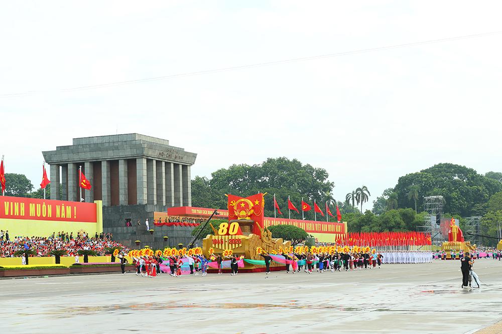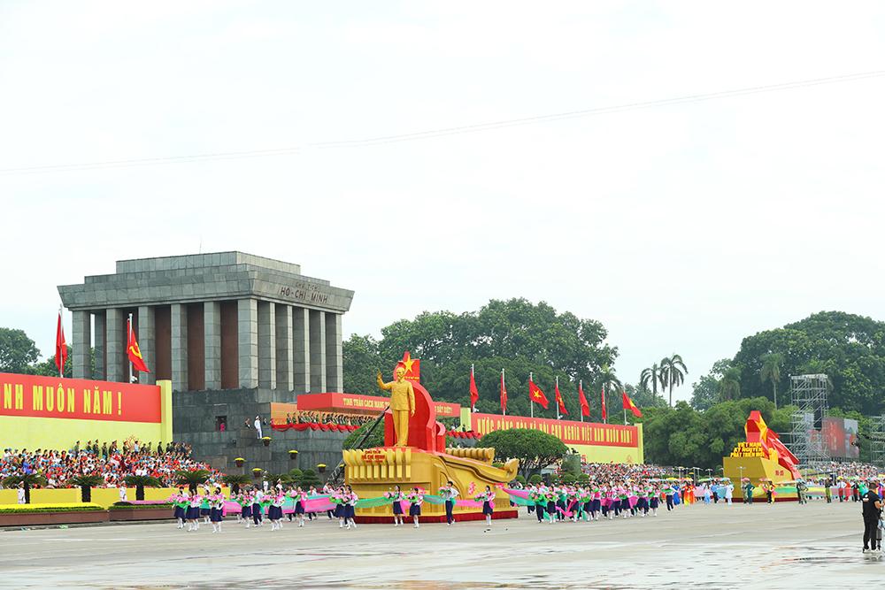Xe rước chân dung Chủ tịch Hồ Chí Minh tiến qua lễ đài