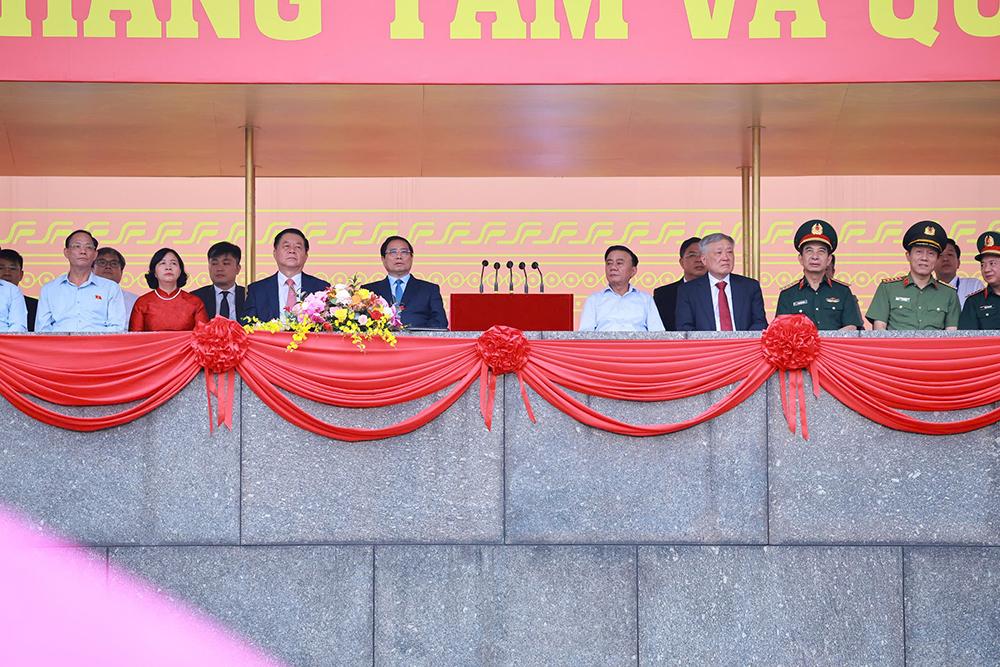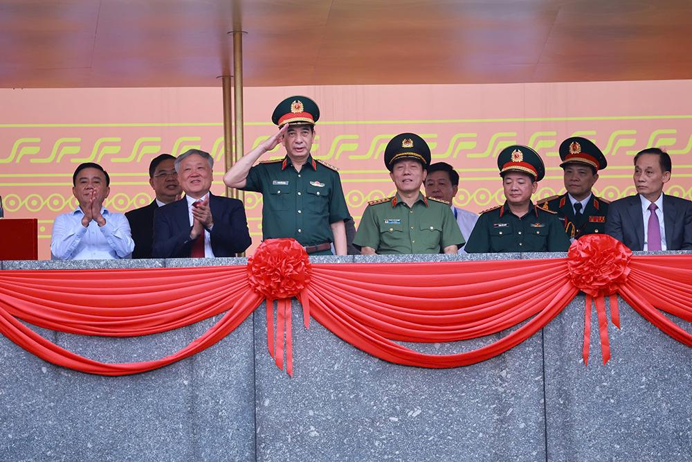 Dự tổng duyệt có các đồng chí Ủy viên Bộ Chính trị: Phạm Minh Chính, Thủ tướng Chính phủ; Trần Cẩm Tú, Thường trực Ban Bí thư, Trưởng Ban Chỉ đạo Trung ương kỷ niệm các ngày lễ lớn và các sự kiện quan trọng của đất nước (2023 - 2025); Nguyễn Hòa Bình, Phó Thủ tướng Thường trực Chính phủ; Nguyễn Trọng Nghĩa, Bí thư Trung ương Đảng, Trưởng ban Tuyên giáo và Dân vận Trung ương, Phó Trưởng ban Thường trực Ban Chỉ đạo Trung ương kỷ niệm các ngày lễ lớn và các sự kiện quan trọng của đất nước (2023 - 2025); Đại tướng Phan Văn Giang, Phó Bí thư Quân ủy Trung ương, Bộ trưởng Bộ Quốc phòng; Đại tướng Lương Tam Quang, Bộ trưởng Bộ Công an; Bùi Thị Minh Hoài, Bí thư Thành ủy Hà Nội. Cùng dự có Đại tướng Trịnh Văn Quyết, Bí thư Trung ương Đảng, Ủy viên Thường vụ Quân ủy Trung ương, Chủ nhiệm Tổng cục Chính trị QĐND Việt Nam; Đại tướng Nguyễn Tân Cương, Ủy viên Trung ương Đảng, Ủy viên Thường vụ Quân ủy Trung ương, Tổng Tham mưu trưởng QĐND Việt Nam, Thứ trưởng Bộ Quốc phòng. Tham dự buổi tổng duyệt có các đồng chí lãnh đạo Bộ Quốc phòng, Bộ Công an, Bộ Tổng Tham mưu, Tổng cục Chính trị QĐND Việt Nam và một số Bộ, ngành Trung ương và địa phương.