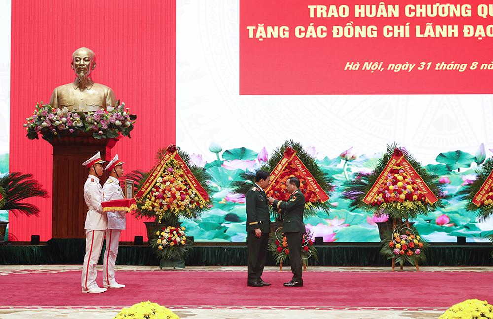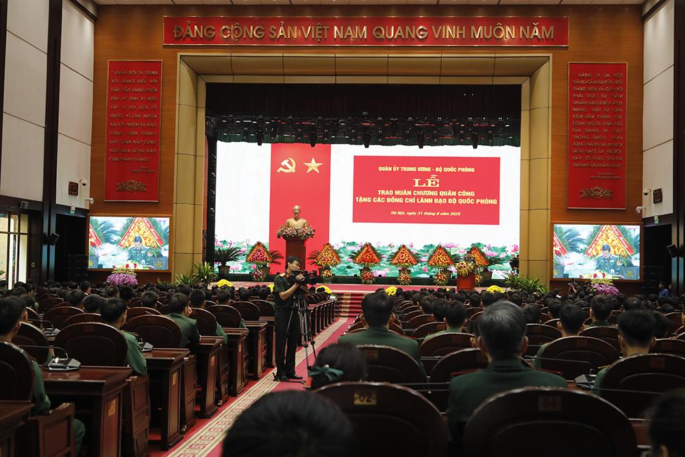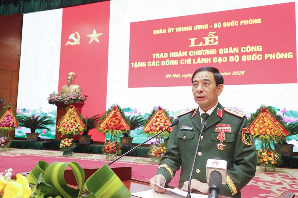 Đại tướng Phan Văn Giang nhấn mạnh, các đồng chí lãnh đạo Bộ Quốc phòng được vinh dự nhận huân chương dịp này là những cán bộ dày dạn kinh nghiệm, trưởng thành từ thực tiễn công tác, chiến đấu, xây dựng đơn vị; đã thể hiện bản lĩnh chính trị vững vàng, phẩm chất đạo đức cách mạng trong sáng, lối sống mẫu mực, tinh thần trách nhiệm cao, tư duy chiến lược sâu sắc, hoàn thành xuất sắc mọi nhiệm vụ được giao, có nhiều đóng góp quan trọng vào sự nghiệp xây dựng Quân đội, củng cố quốc phòng, xây dựng và bảo vệ Tổ quốc trong thời kỳ mới.