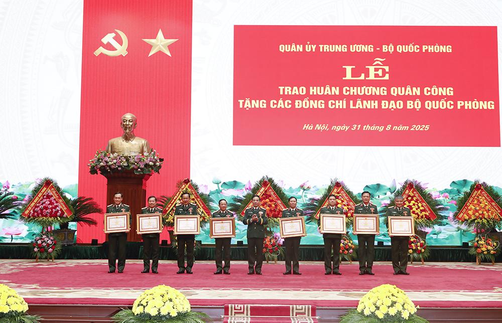 Huân chương Quân công hạng Nhất được trao cho 8 đồng chí: Đại tướng Phan Văn Giang, Bộ trưởng Bộ Quốc phòng; Đại tướng Trịnh Văn Quyết, Chủ nhiệm Tổng cục Chính trị QĐND Việt Nam; các đồng chí Thứ trưởng Bộ Quốc phòng: Đại tướng Nguyễn Tân Cương, Tổng Tham mưu trưởng QĐND Việt Nam; Thượng tướng Võ Minh Lương; Thượng tướng Hoàng Xuân Chiến; Thượng tướng Lê Huy Vịnh; Thượng tướng Vũ Hải Sản; Thượng tướng Phạm Hoài Nam.