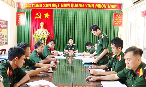 | Chi bộ Quân sự phường Phước Long (Đồng Nai) sinh hoạt ra nghị quyết lãnh đạo nhiệm vụ tháng 7-2025. |