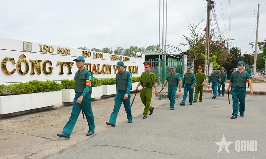 Dân quân, công an và tự vệ doanh nghiệp ở Đồng Nai tuần tra bảo vệ hoạt động sản xuất kinh doanh.