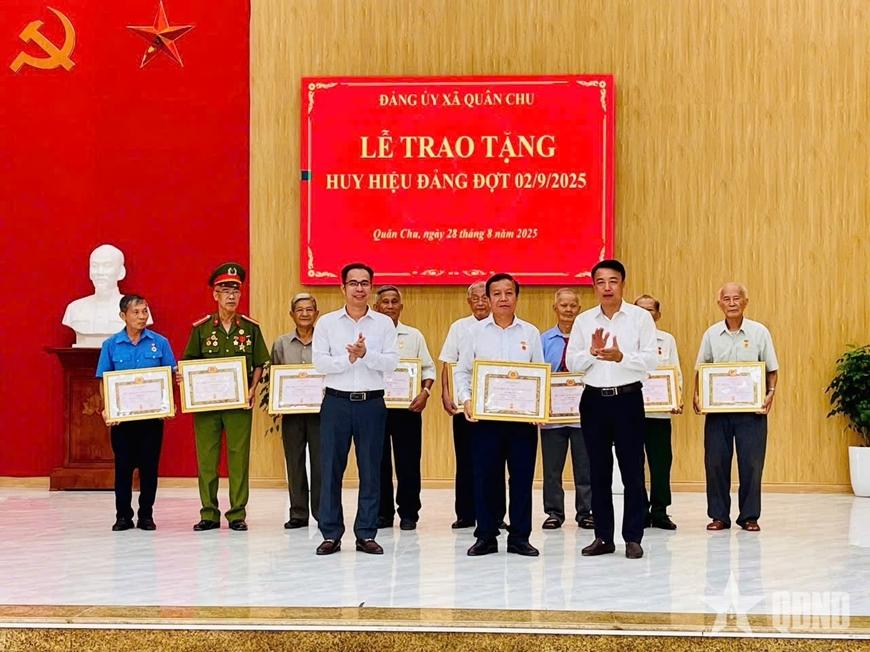 | Đảng ủy xã Quân Chu, tỉnh Thái Nguyên tổ chức lễ trao tặng huy hiệu Đảng đợt 2-9-2025. Ảnh: MINH QUÂN |