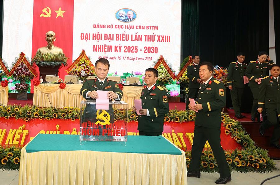 Các đại biểu bỏ phiếu bầu Ban Chấp hành Đảng bộ Cục Hậu cần nhiệm kỳ 2025 - 2030.