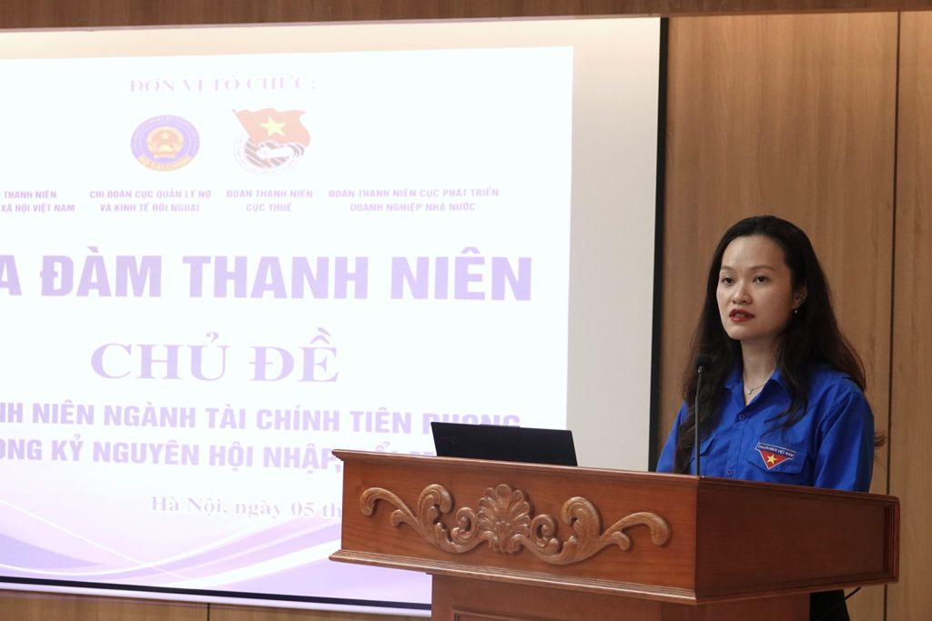 Phát biểu khai mạc, bà Nguyễn Phương Ngọc Huyền, Bí thư Chi đoàn Thanh niên Cục Quản lý nợ và Kinh tế đối ngoại cho biết, tọa đàm "Thanh niên ngành Tài chính tiên phong trong kỷ nguyên hội nhập, đổi mới" có chủ đề thiết thực, có tính định hướng cao và truyền cảm hứng mạnh mẽ, nhằm nâng cao nhận thức, năng lực hội nhập và tinh thần đổi mới cho đội ngũ đoàn viên, thanh niên trong toàn Ngành Tài chính.