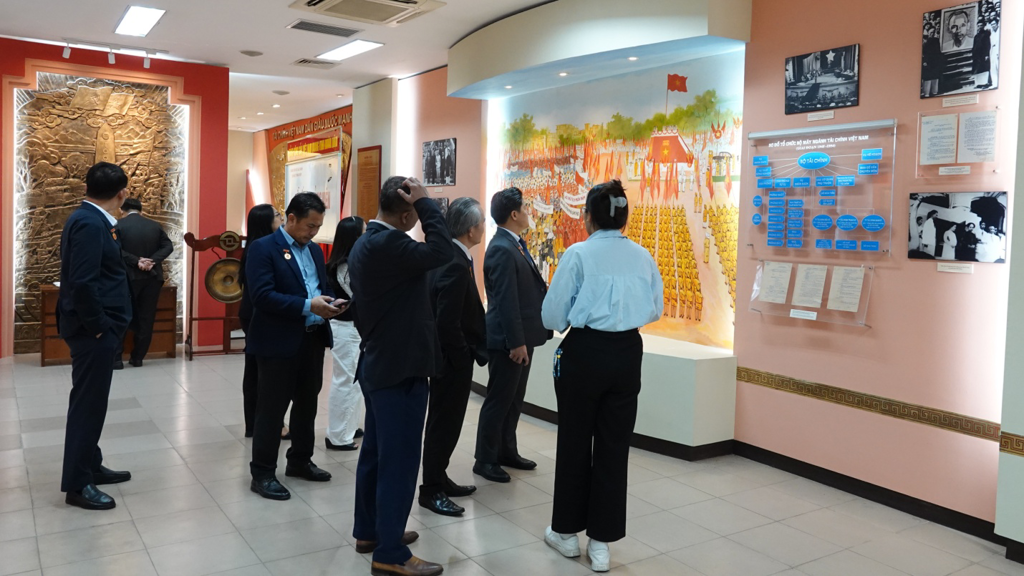 Đoàn công tác Cục Quản lý công sản - Bộ Tài chính Lào tham quan Phòng Truyền thống ngành Tài chính