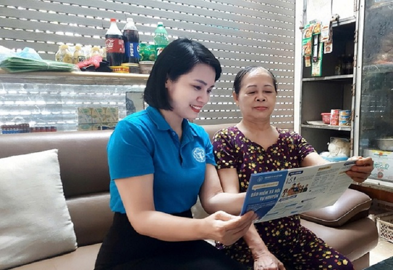 Cán bộ BHXH tỉnh Phú Thọ tuyên truyền vận động chủ hộ kinh doanh tham gia BHXH.