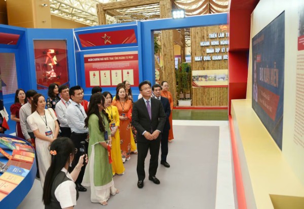 Sáng 28/8, ngay sau Lễ khai mạc Triển lãm thành tựu Đất nước nhân dịp kỷ niệm 80 năm Ngày Quốc khánh (2/9/1945-2/9/2025), Ủy viên Bộ Chính trị, Phó Thủ tướng Thường trực Chính phủ Nguyễn Hòa Bình; Ủy viên Trung ương Đảng, Phó Thủ tướng Chính phủ Lê Thành Long và nhiều đại biểu đã tới thăm không gian triển lãm của Bộ Tư pháp tại Triển lãm.