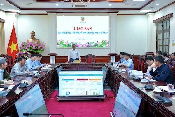Chiều 28/11, Bộ trưởng Bộ Tư pháp Nguyễn Hải Ninh, Trưởng Ban Chỉ đạo Bộ Tư pháp về phát triển khoa học, công nghệ, đổi mới sáng tạo, chuyển đổi số và Đề án 06 (Ban Chỉ đạo 57) chủ trì giao ban Ban Chỉ đạo 57 Bộ Tư pháp.