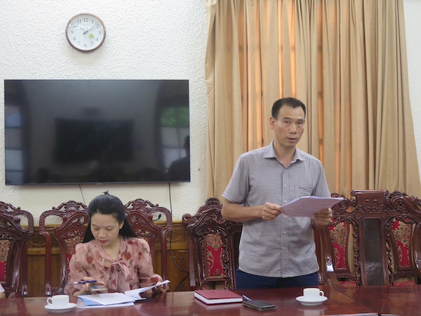 Tổng Biên tập Tạp chí Dân chủ và Pháp luật Trương Thế Côn báo cáo tại buổi làm việc.