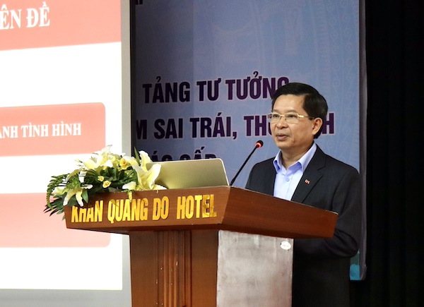 Báo cáo viên Vũ Trọng Hà, Chánh Văn phòng Ban Chỉ đạo 35 Trung ương trình bày các nội dung tập huấn.