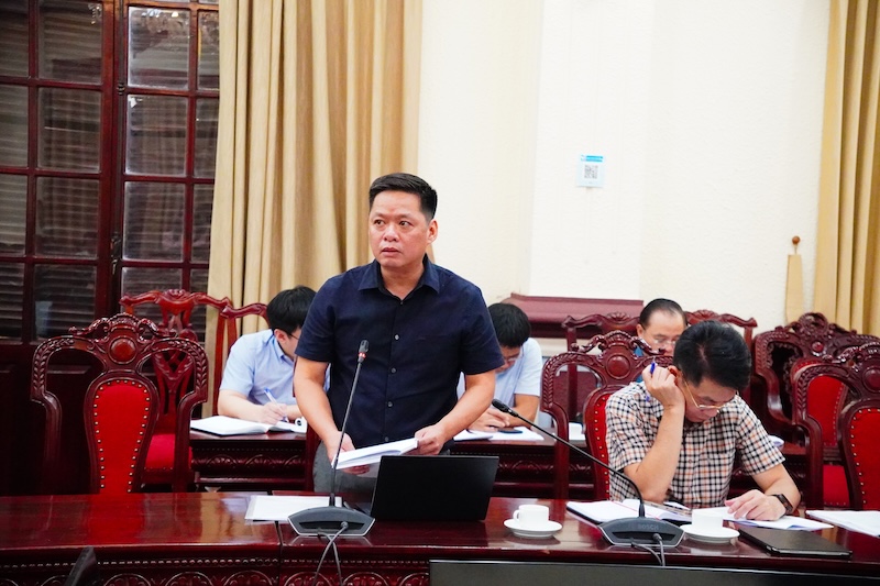 \Ông Nguyễn Tư Long, Phó Vụ trưởng Vụ Công chức, viên chức, Bộ Nội vụ báo cáo tại cuộc họp.