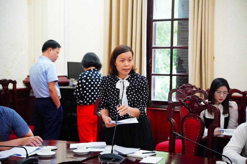 Bà Nguyễn Thị Thu Hương, đại diện Cục Nhà giáo và Cán bộ quản lý giáo dục, Bộ Giáo dục & Đào tạo phát biểu tại cuộc họp.