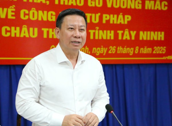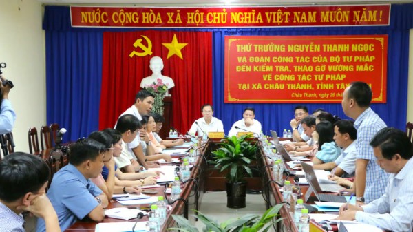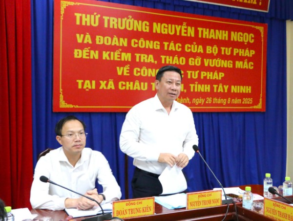 Sáng 26/8, Đoàn công tác của Bộ Tư pháp do Thứ trưởng Nguyễn Thanh Ngọc làm Trưởng đoàn đã có buổi kiểm tra, tháo gỡ những vướng mắc về tư pháp tại phường Long Hoa và xã Châu Thành. Cùng dự có Phó Chủ tịch UBND tỉnh Đoàn Trung Kiên, lãnh đạo các sở, ngành, địa phương của Tây Ninh.