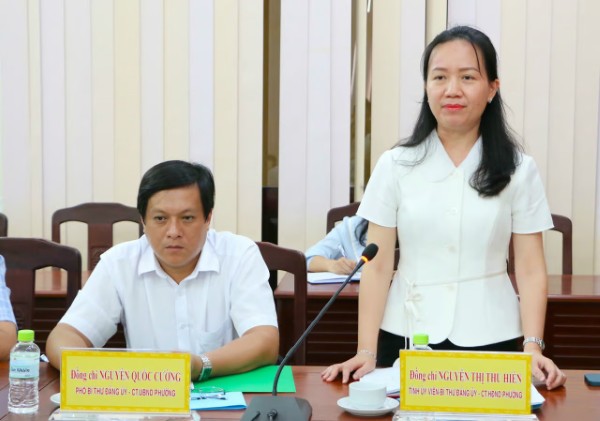 Bí thư phường Long Hoa trình bày khó khăn, vướng mắc tại địa phương với Đoàn công tác.