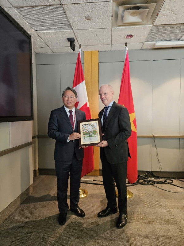 Bộ trưởng Nguyễn Hải Ninh và Thứ trưởng Bộ Các vấn đề toàn cầu Canada.
