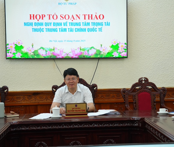 Ngày 15/8, Thứ trưởng Nguyễn Thanh Tịnh chủ trì cuộc họp Tổ soạn thảo Nghị định quy định về Trung tâm trọng tài quốc tế thuộc Trung tâm tài chính quốc tế.