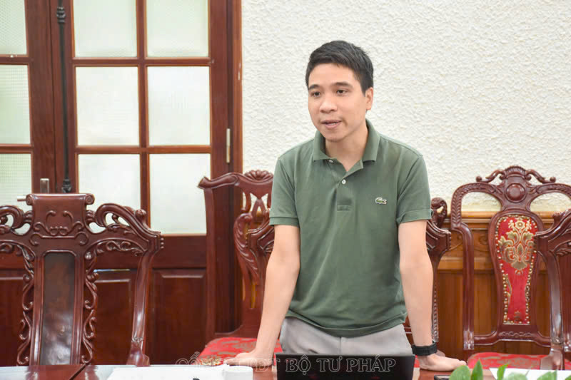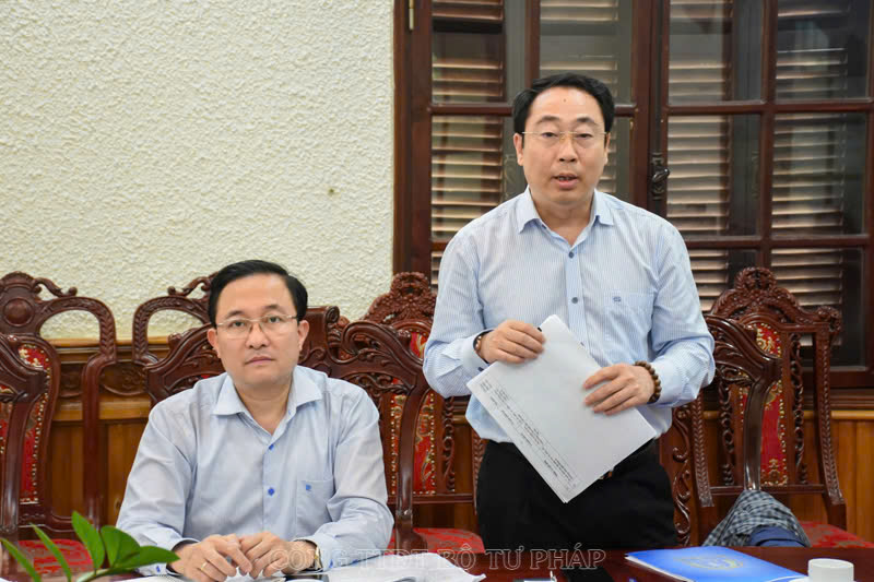 Phó Cục trưởng Cục PBGDPL Phan Hồng Nguyên báo cáo tại buổi làm việc.