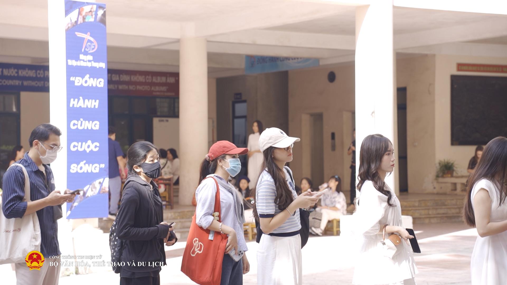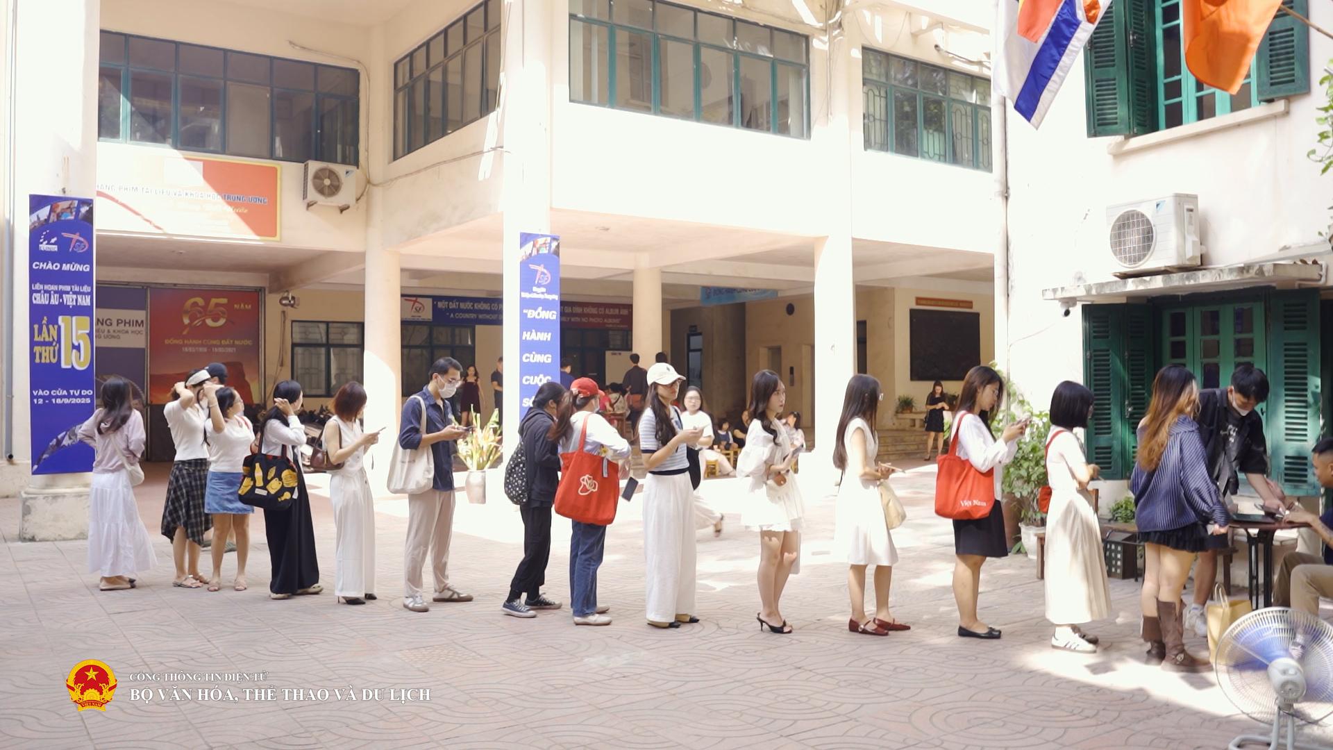Dù được tổ chức vào cuối tuần, khán giả đã xếp hàng dài từ sớm để chờ check-in buổi công chiếu phim tài liệu "Chân trời rực rỡ".