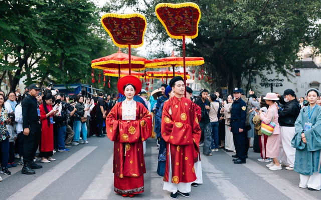 Đoàn rước quy tụ đông đảo cộng đồng yêu Việt phục, các nhóm nghiên cứu và thực hành văn hóa, cùng nhiều cặp đôi đăng ký tham gia theo hình thức 1 nam – 1 nữ.