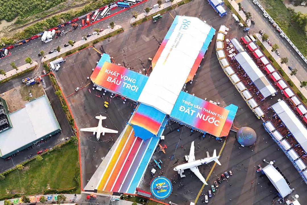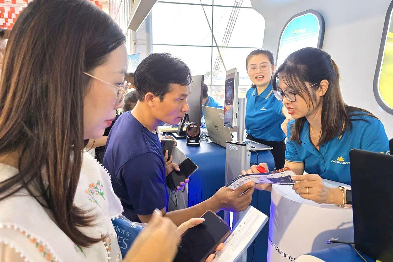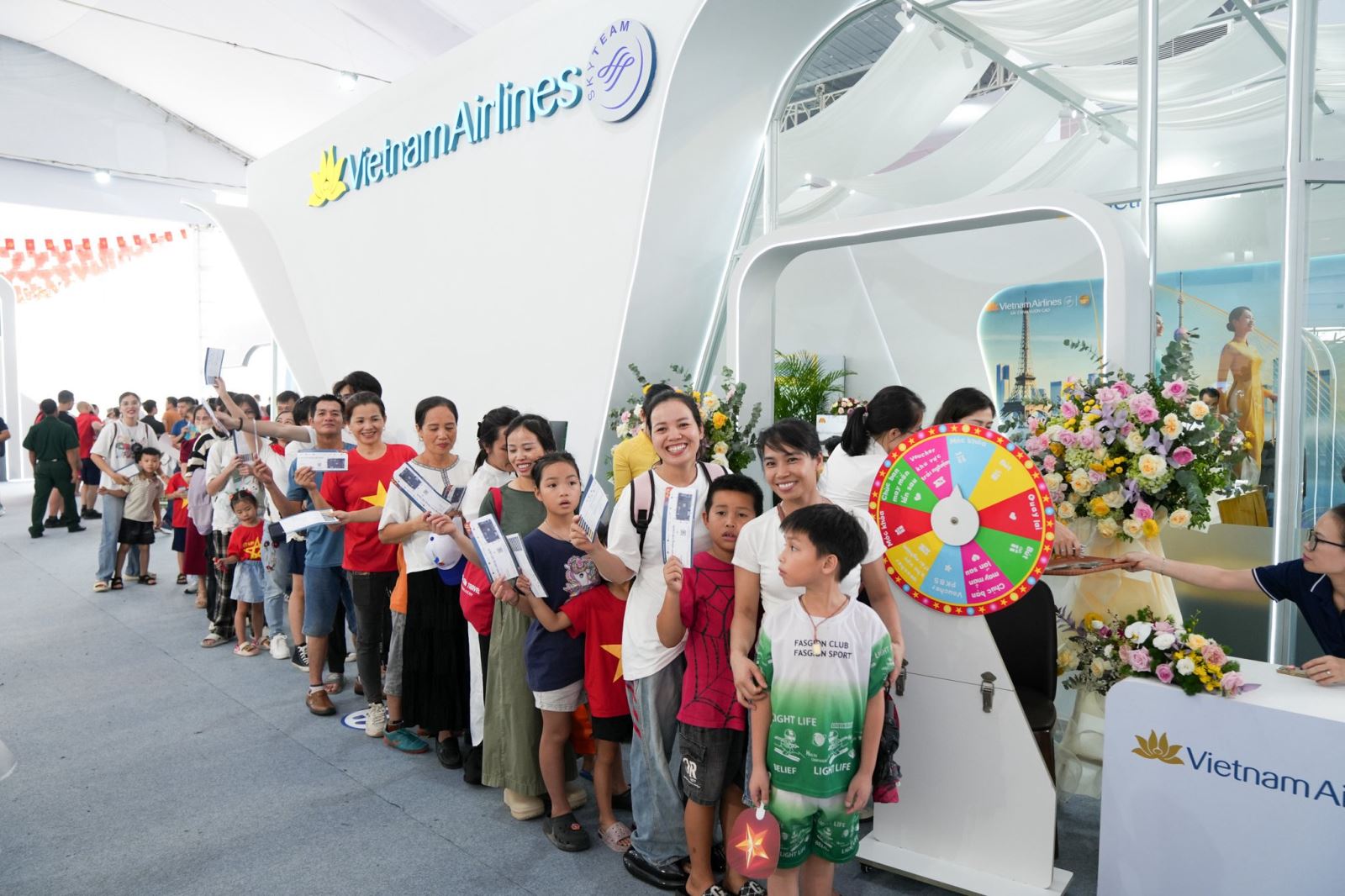 Không gian trưng bày của Vietnam Airlines tại Phân khu “Khát vọng bầu trời” được thiết kế như một chuyến bay trải nghiệm, tái hiện 30 năm hình thành và phát triển của Hãng Hàng không quốc gia Việt Nam. Khu trưng bày được thiết kế theo 5 cột mốc phát triển của hãng gồm: Lịch sử và khát vọng chinh phục bầu trời; Hệ sinh thái dịch vụ mặt đất và những nỗ lực phát triển xanh; Dịch vụ trên không và đội ngũ phi công, tiếp viên; Đội tàu bay hiện đại, chuyển đổi số, công nghệ mô phỏng và thực tế ảo và Hệ thống mạng bay toàn cầu. Gian hàng triển lãm của Vietnam Airlines thu hút đông đảo khách tham quan, không khí sôi động với hàng loạt hoạt động trải nghiệm hàng không thú vị: từ buồng lái mô phỏng, khoang hành khách thực tế ảo đến phòng chờ thương gia…