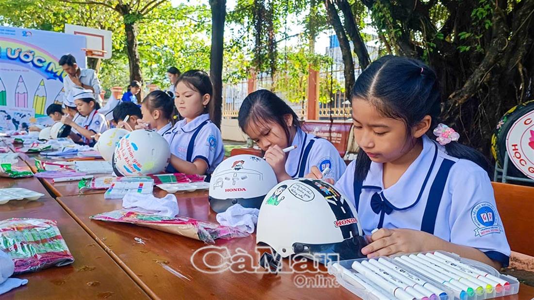 Cẩn thận từng nét vẽ, hoàn thành phần thi trang trí mũ bảo hiểm với thông điệp “An toàn giao thông là không tai nạn”, em Lê Nguyễn Thiên Thy, học sinh Lớp 3A, Trường Tiểu học Hùng Vương (phường Tân Thành), mong muốn mỗi thông điệp về ATGT sẽ ngày thêm lan toả. Tham gia phần thi vẽ với chủ đề “Giữ trọn ước mơ”, các em được phát huy năng khiếu hội hoạ, tính sáng tạo, đồng thời chia sẻ những thông điệp ý nghĩa.