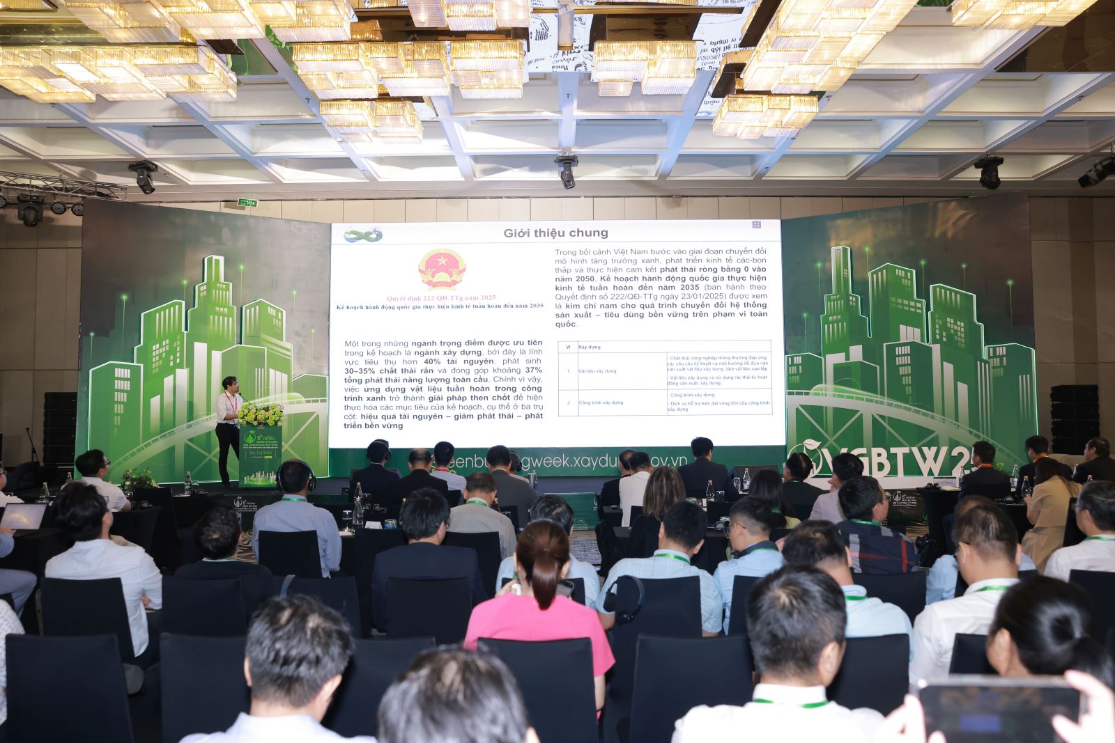 Phát biểu tại hội thảo, ông Lê Cao Chiến - Phó Giám đốc Trung tâm Thiết bị, môi trường và an toàn lao động (Viện Vật liệu xây dựng) cho biết, việc ứng dụng vật liệu tuần hoàn không chỉ giúp giảm khai thác tài nguyên và phát thải khí nhà kính, mà còn tạo ra giá trị kinh tế mới thông qua tái sử dụng, tái chế, kéo dài vòng đời vật liệu, giảm chất thải xây dựng. Các tiêu chuẩn quốc tế như LEED, LOTUS hay EDGE đều dành 12-20% tổng điểm đánh giá cho tiêu chí vật liệu, cho thấy vai trò ngày càng quan trọng của lĩnh vực này.