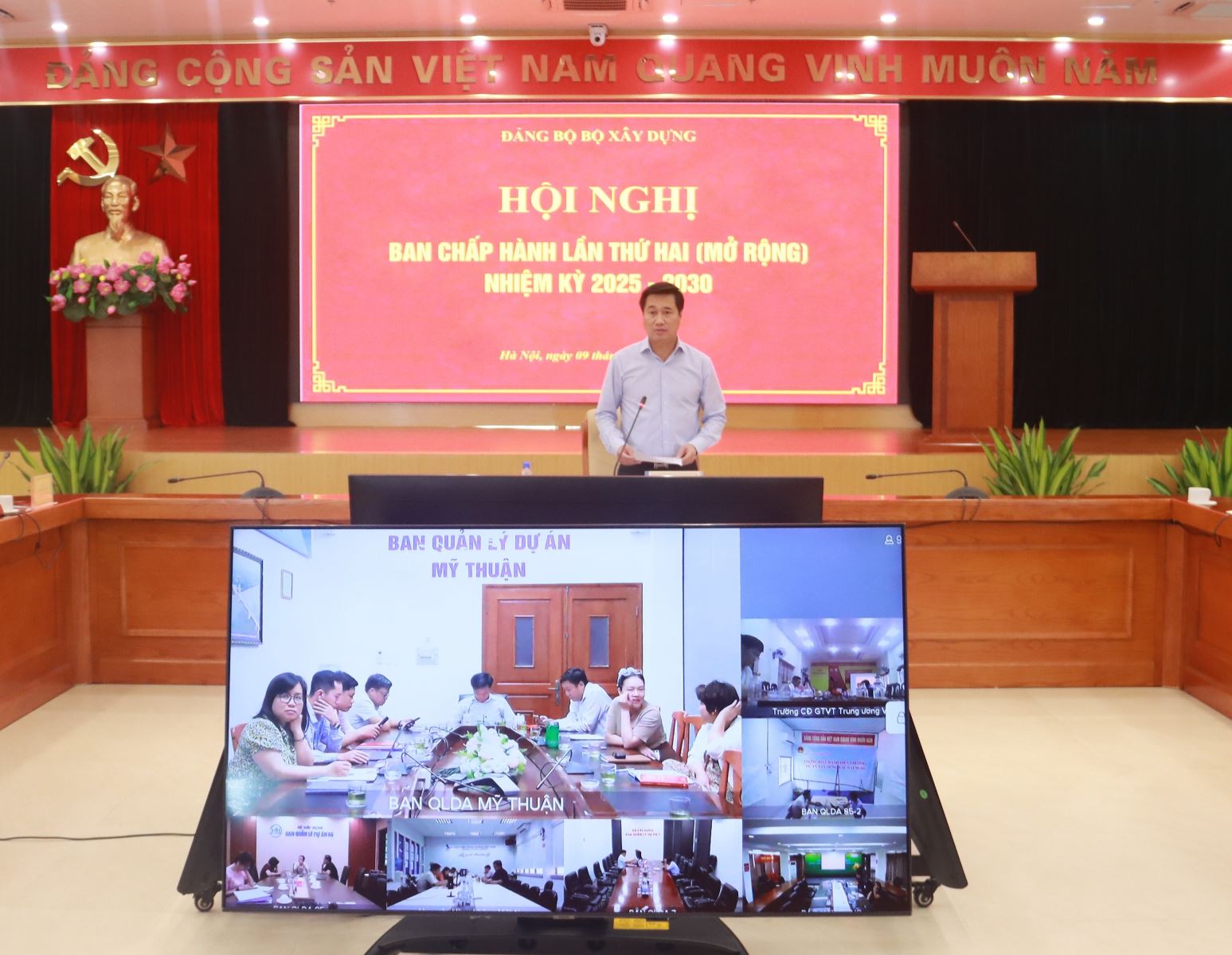 Hội nghị được tổ chức theo hình thức trực tiếp kết hợp trực tuyến từ điểm cầu chính của Đảng ủy Bộ Xây dựng (trụ sở Bộ Xây dựng, 80 Trần Hưng Đạo, Phường Cửa Nam, Hà Nội) đến điểm cầu một số cấp ủy, tổ chức đảng trực thuộc Đảng ủy Bộ.