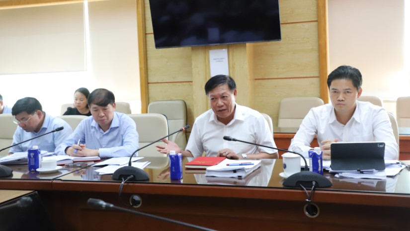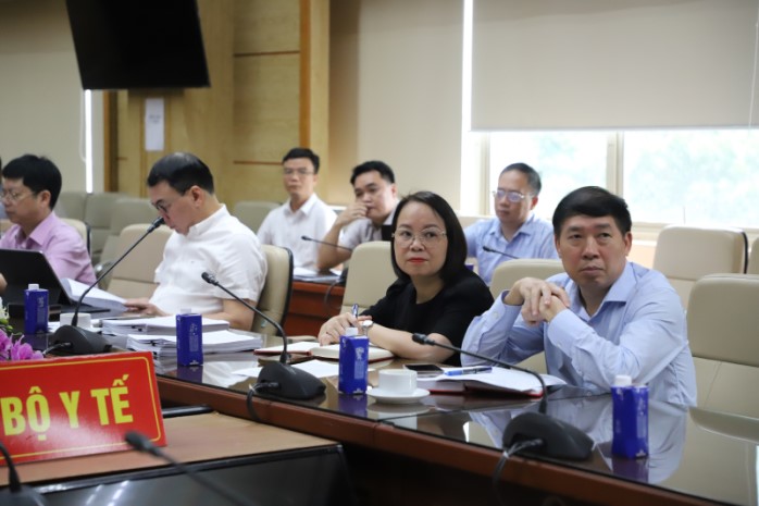 Thứ trưởng Bộ Y tế Đỗ Xuân Tuyên, đại diện lãnh đạo các Cục, Vụ, Văn phòng Bộ và đoàn Công tác Văn phòng Chính phủ thảo luận tại hội nghị