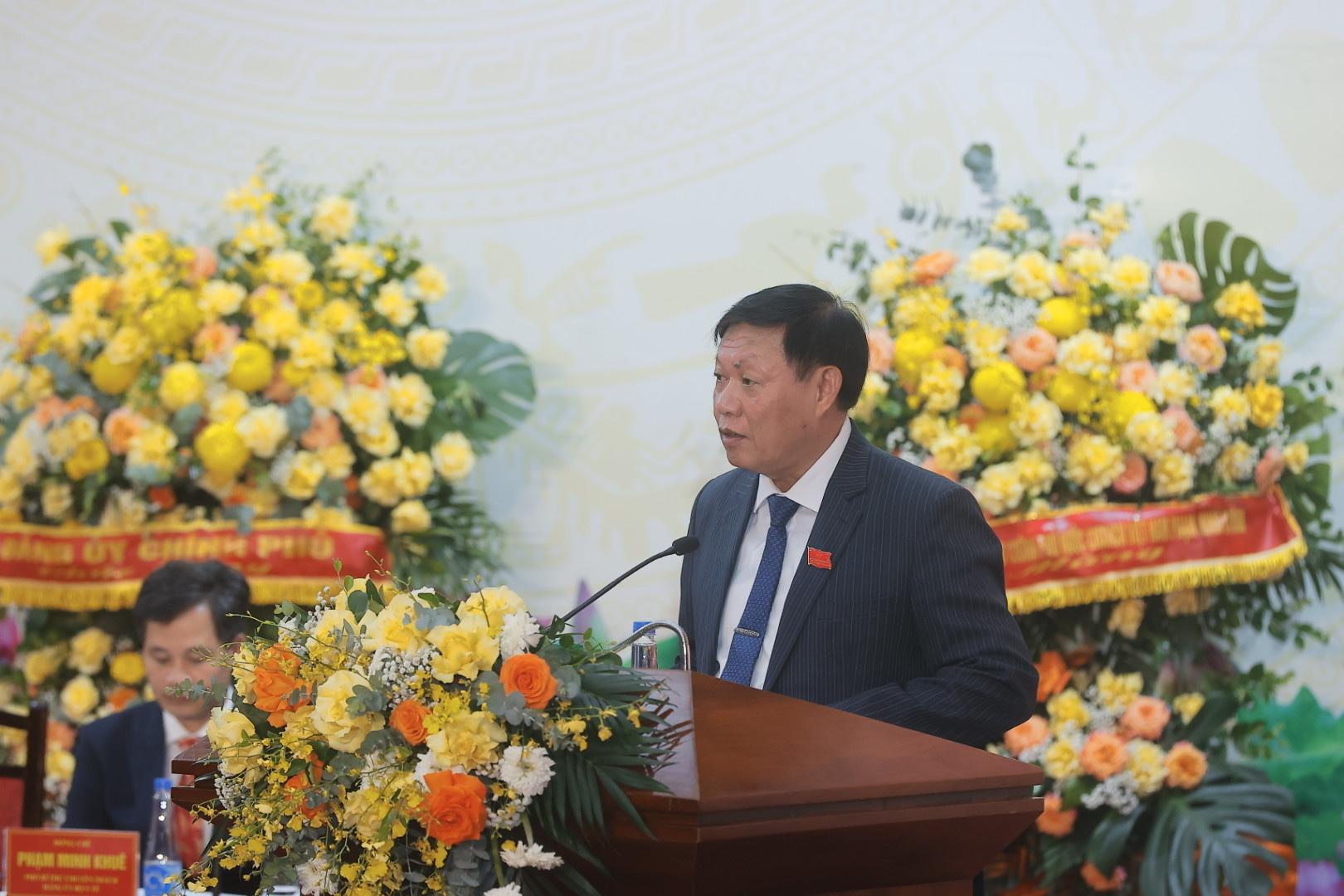 Đồng chí Đỗ Xuân Tuyên, Phó Bí thư Thường trực, Thứ trưởng Bộ Y tế trình bày Báo cáo Chính trị tại Đại hội